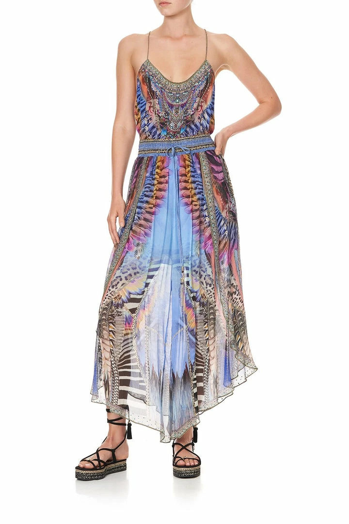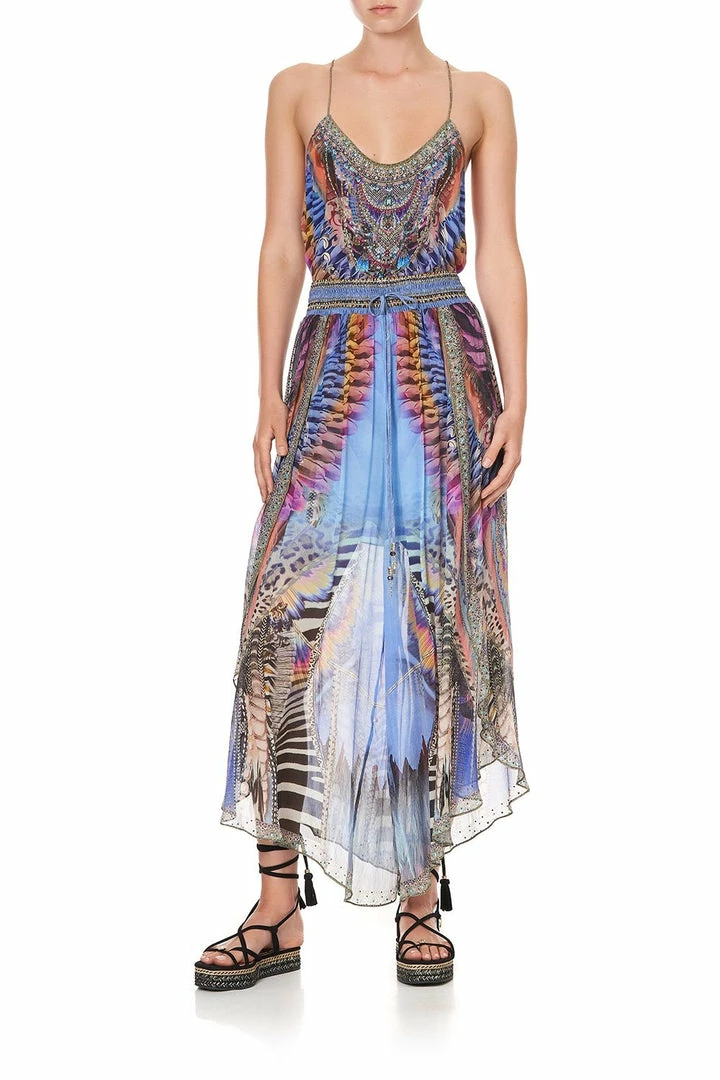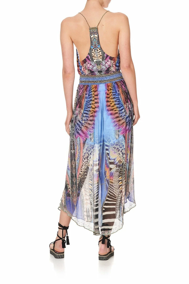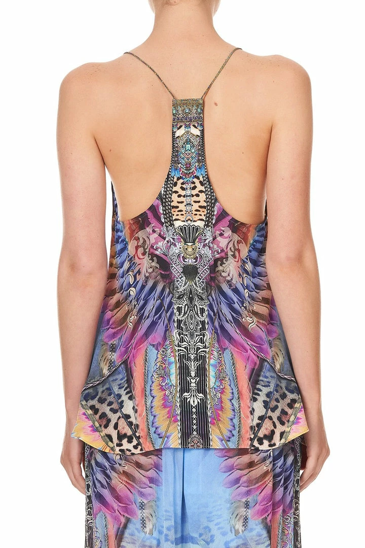 Bold leopard and zebra prints dance with feather motifs in the Love On The Wing T-Back Shoestring Top. The melody of animal prints pays homage to the majesty of nature, crowned with a sprinkling of hand-placed CAMILLA crystals. Crafted from 100% silk, this singlet top is cut into a flared hem with round neck and elegant shoestring straps. Pay tribute to this print’s magnificent muse and wear back with the Love On The Wings Curved Hem Pant for an effortless look.