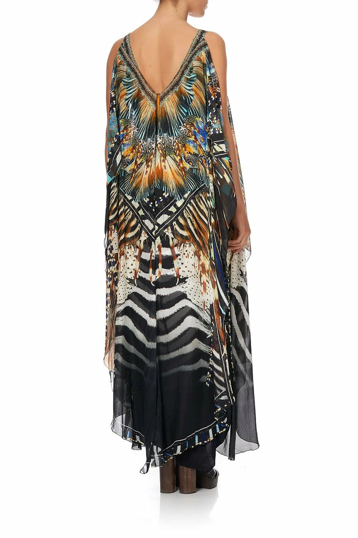 Multiwear maxi dress, the Lost Paradise V-Neck Dress with Back Overlayer embodies the embodies the underwater beauty of the Australian coral coastline with layers of gentle silk in a bold oceanic reef print.