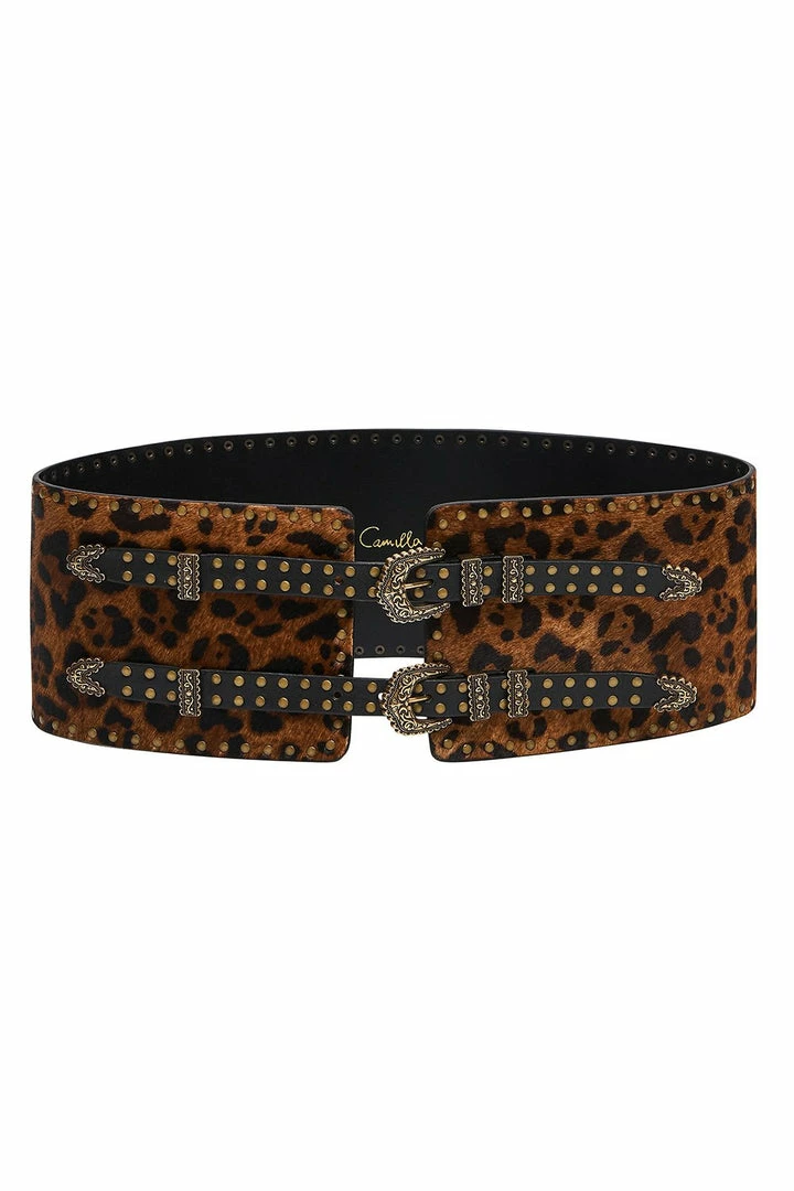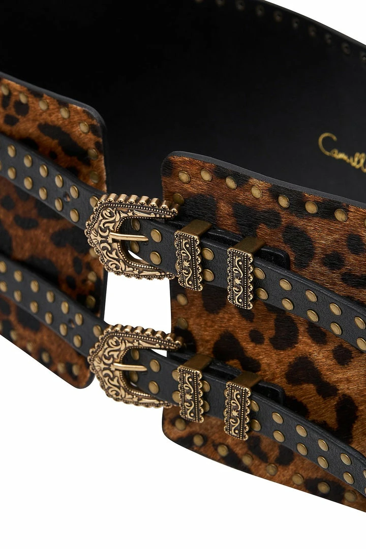 A chunky statement leopard print belt with hallmarks of bohemian aesthetics, the Fire at Night Wide Double Buckle Belt exudes refined luxe. Crafted in soft leather body with pony effect, its smooth leather inner allows for a comfortable fit while its double centre piece buckle offers a bohemian focal point. Wrap around flowy animal print dresses for form.