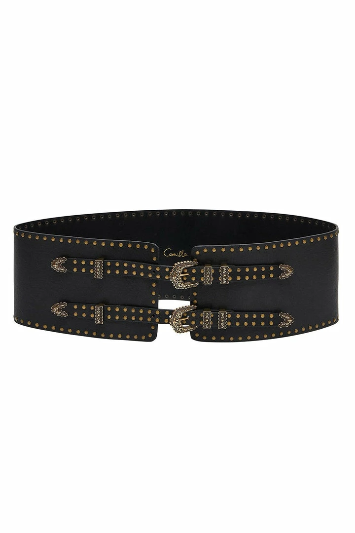 A chunky statement belt with hallmarks of bohemian aesthetics, the Solid Black Skinny Wide Double Buckle Belt exudes refined luxe. Crafted in soft leather body, its smooth leather inner allows for a comfortable fit while its double centre piece buckle offers a bohemian focal point. Wrap around flowy dresses for form.