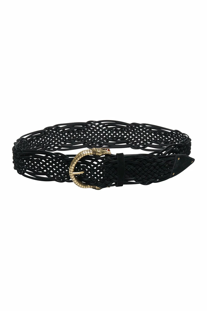 This essential CAMILLA piece to pair back with any outfit, the Liv A Little Woven Suede Belt pays homage to a sweet seduction amongst fiercely feminine blooms. This charming braided belt features ornate hammered studs, croc and crystal buckles, adjustable length for comfort, as well as 100% leather fabrication.