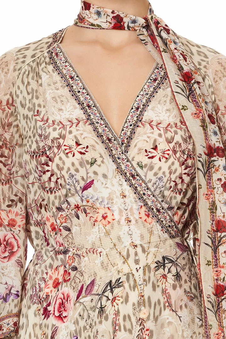 – Drifting Dreamer Wrap Dress With Neck Tie