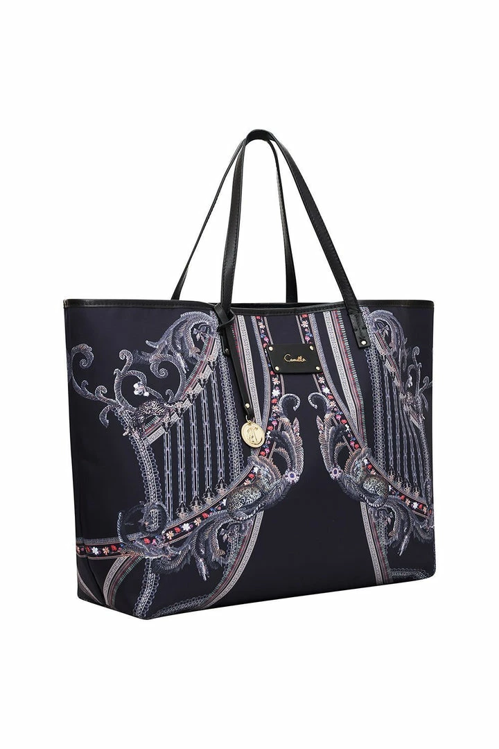 Opulence is emblazoned across the Belle Of The Baroque XL tote, a carry-all bag fit for a queen. Inspired by the drama and decoration of the baroque era, luxuriating leopards drape themselves over dripping ornate patterns. This large tote bag achieves ultimate practicality with leather straps and a magnetic snap closure. An internal detachable purse keeps your smaller items within easy reach. You’ll find this bag fits all purposes and all your bits and pieces.