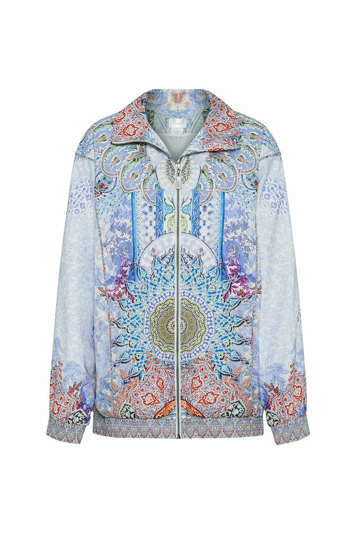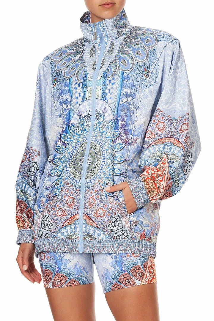 Feel strong and breathe deeply in the Concubine Realm Zip Front Windbreaker. Inspired by the opulent Sultan’s palace where paramours trod a golden path to pleasure, this durable and light jacket is a dreamy print of ethereal kaleidoscopic blues. A must-have addition to your activewear wardrobe, designed with a centre front zip with piping through the body; cut in a relaxed fit allowing for flexible movement while keeping a flattering shape. Providing a cooling sensation against the skin, this printed windbreaker is a delightful choice for a cleansing run or post workout layer. A fabulous piece best layered with co-ordinating activewear from the Concubine Realm collection.
